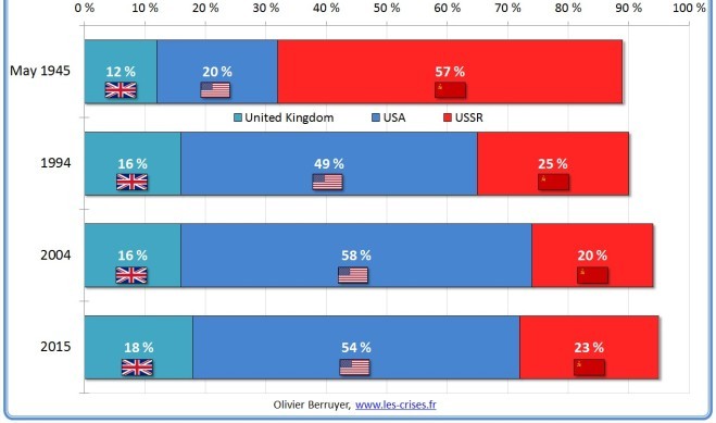 Однако, к 1995 и 2004 годам мнение французов изменилось — они стали верить, что наибольшую роль в победе над фашизмом в Европе сыграли США.