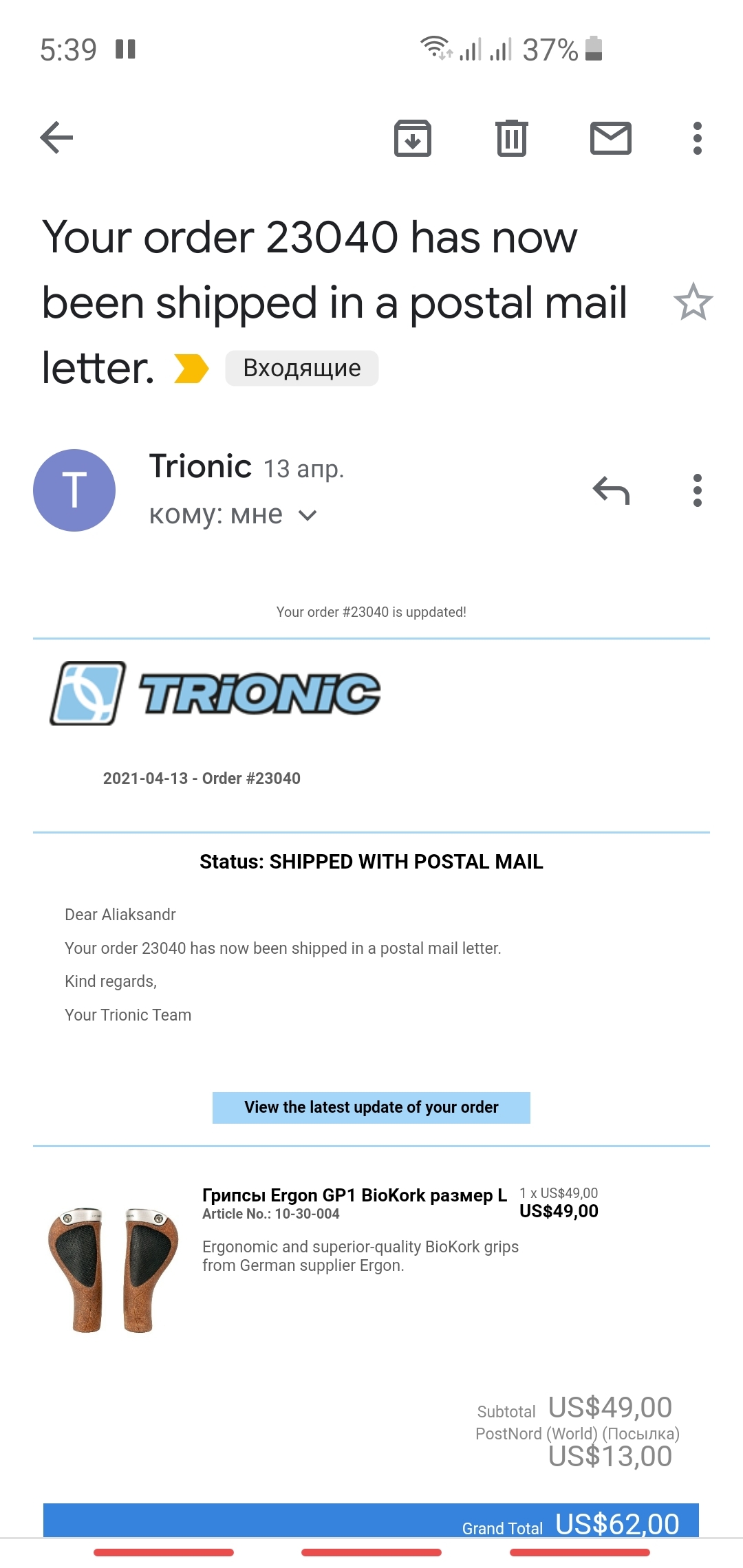 Заказал себе вещицу для велосипеда с сайта трионик, Швеция, в Беларусь, отправили в прошлый понедельник вроде как,на сайте написано было 3-4 дня, но до сих пор нету посылки, и даже трек не написали и где можно отследить, кто заказывал вообще оттуда что нибудь? Была указана почта post nord(world)