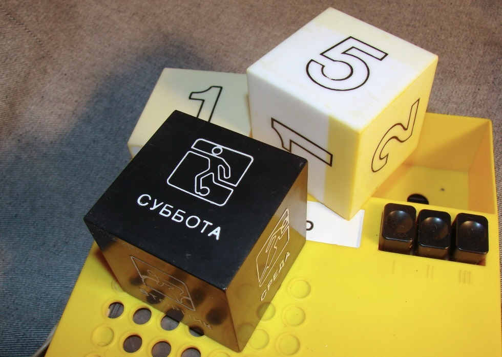 Видимо инженеры-конструкторы завода телефонной аппаратуры тоже поняли, что слегка погорячились с сокращением дней в неделе. Вскоре начали выпускать календарь-информатор с новым кубиком дней недели, где субботу и воскресенье объединили.