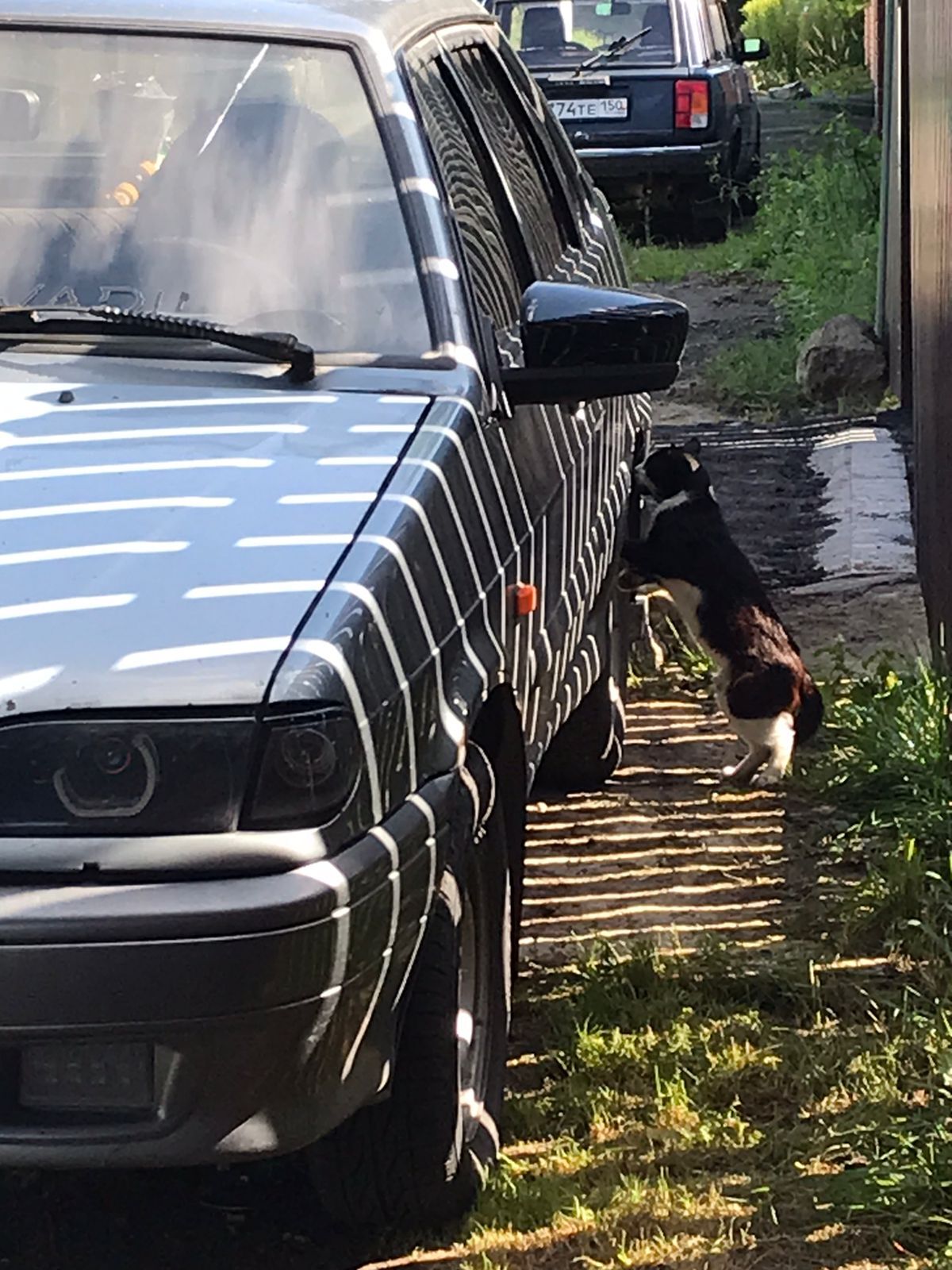 Много раз слышала, как кошаки застревали под капотом, но никогда не думала, что похожий случай будет и в моём опыте. Вчера был крайне странный день в отношении животных. Поехала утром за сыном к своим родителям. Пока была у них, позвонил сосед, и сказал что под машиной мяукает кот. Вышла посмотреть - действительно сидит знакомый кот Джексон, он стабильно ошивается около моей машины, поэтому значения этому не придала, подумала что это он нудит, мало ли что в кошачью голову взбрендило. Поехали с дитём домой. На повороте к дому, услышала единичное мяу. Окна были открыты, и слышалось это как будто с улицы, подумала что наверное где-нибудь на дереве сидит бедолажка. Пока шли к дому, прислушивалась и разглядывала округу. Но кроме (внезапно!!) сидевшей у забора скромной утки, никого не увидела. Удивилась и пошла дальше. Приготовила обед и собралась отвезти его супругу на работу. На всякий случай заглянула под капот и в багажник, мало ли, истории же были.. Но там никого и тишина. Вот поехали, и тут опять, еле слышное "мяу". Спрашиваю сына (так, на всякий случай, мало ли крыша поехала)), - ты слышал? Он говорит - да!.. Доехали, сообщаю Вадиму что у меня в машине кто-то мяукает, он тоже переспрашивает дитё, слышал ли он (не, ну а то мало ли..🤣), на что получил утвердительный ответ. Начал искать, тоже посмотрел все под капотом, по салону, полез под машину и вот он сюрприз - сидит на подкрылке, через дно не вытащить. Стал откручивать подкрылок, а там ещё один сюрприз - вместо одного, два котенка!🥺 Бедолаги, очень дикие, шипят, кусаются и вылезать не хотят. Сосисками заманивал, пригладить пытался, ни в какую, видимо с рождения где то жили дикарьками. Вытащил аккуратно одного, тот драпанул куда-то, второй сам выпрыгнул и тут же полез прятаться под другую машину. Видимо поездка ~20 км на подкрылке ничему не научила. А может логово было в какой-нибудь заброшенной машине, кто знает.. И жалко дурашек, могли бы домой забрать, но они свой выбор сделали, дай бог чтобы выжили. Думаю охотники будут лютые. В общем странноватый день был. А вечером фото сосед скинул, как Джексон у того самого колеса тусил, группа поддержки усатая.