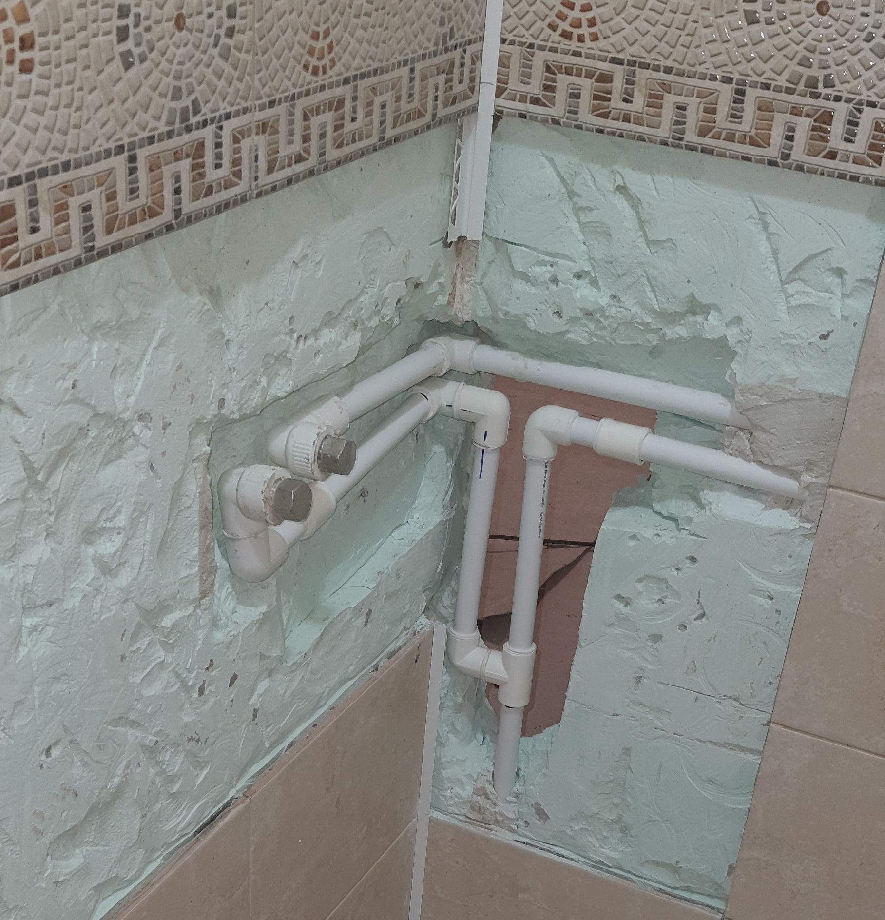 Допускаю, что времени на это тогда не было. Хотя бы надо было взять 2 комбинированные муфты и соединить их полноценной стальной американкой. Такие соединения, хоть и тоже не желательно прятать в стену, показали себя гораздо лучше чем полипропиленовые американки и часто применяются даже в отоплении. Так же добавлю, что полипропиленовые трубы, которые будут спрятаны, желательно оборачивать в цилиндры из вспененного полиэтилена для компенсации расширения и удобства замены в будущем.