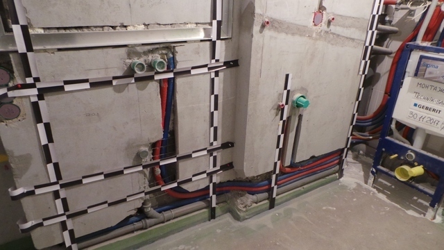 Трубопроводы в зданиях прокладываются на подвесках, опорах и кронштейнах открыто или скрыто (внутри шахт, строительных конструкций, борозд, в каналах). Скрытая прокладка трубопроводов необходима для обеспечения защиты пластмассовых труб от механических повреждений.