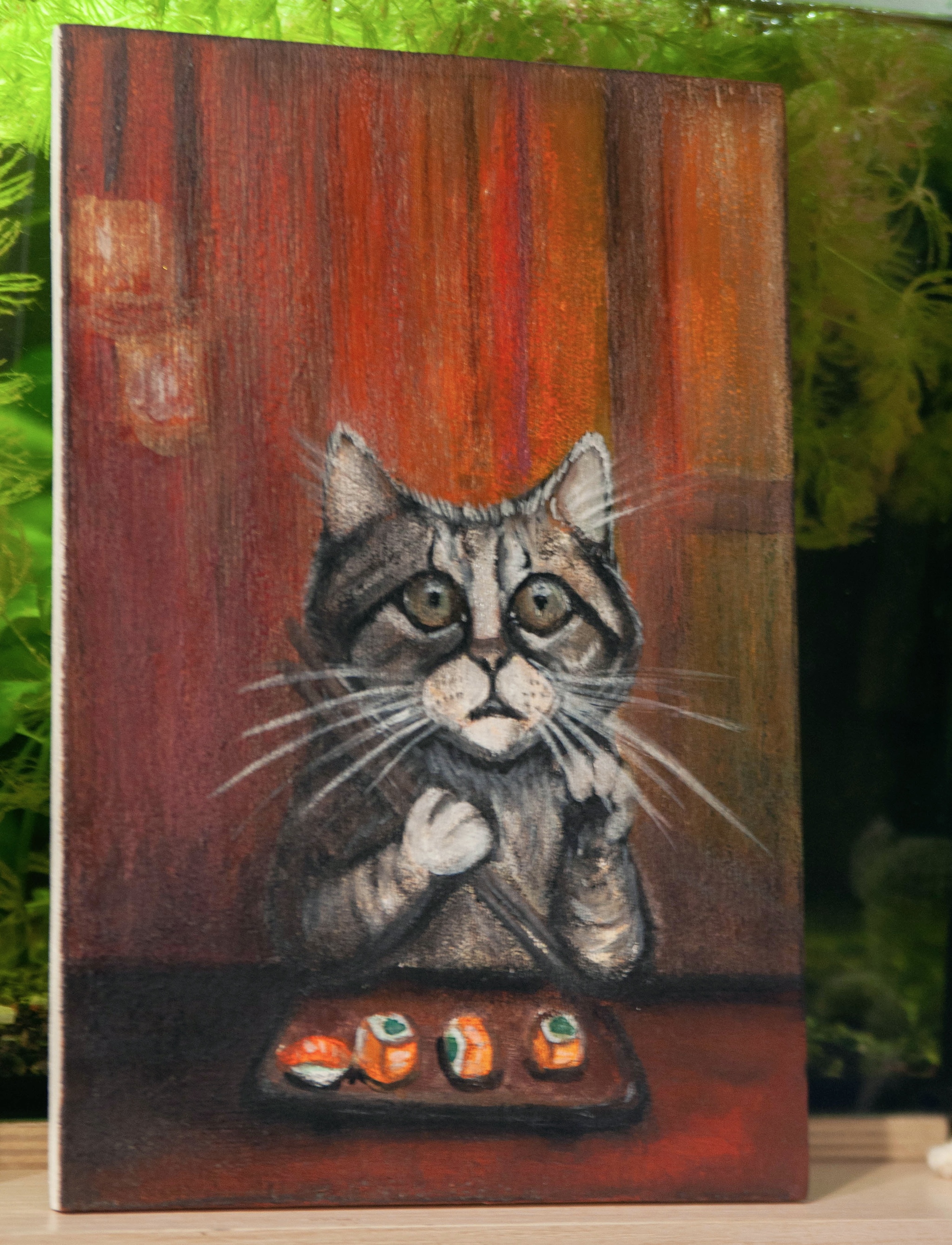 🔹Одна из моих работ на заказ. Было достаточно интересно. У меня разные версии котизма. И с винцом, и в компании с чайкой, а в этот раз для ценителей роллов и котиков одновременно.