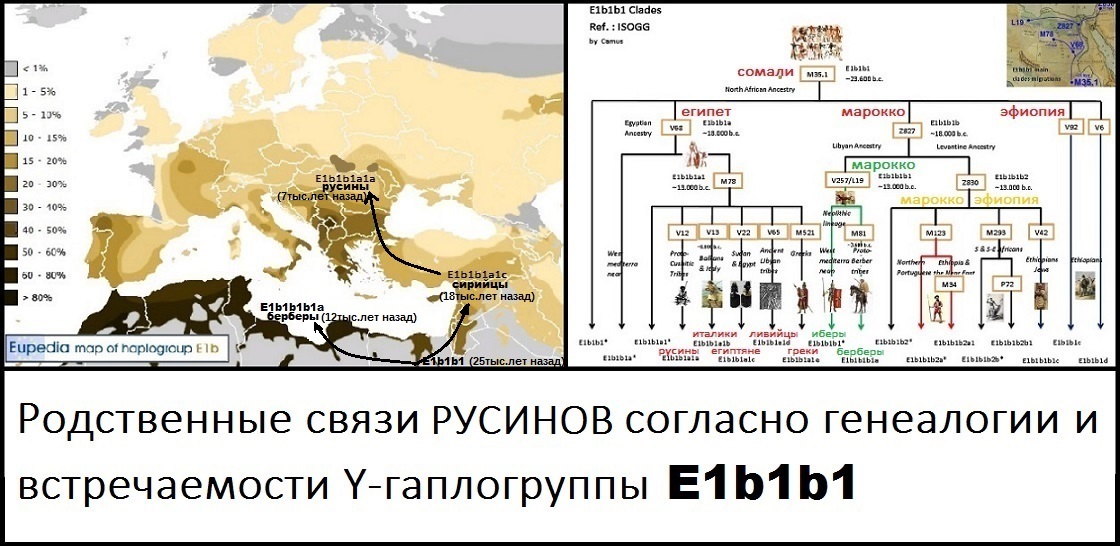 но и по распространению субклада [4] E1b1b1 Y-гаплогруппы E. Земледелие шло из Эфиопии через Египет, Палестину и Сирию. Шло тысячи лет - не только на Балканы, но и по всей Северной Африке . ДНК-генеалогия покажет и детали этого пути. Расовые типы русинов Карпат и берберов Марокко удивительно похожи, так как..