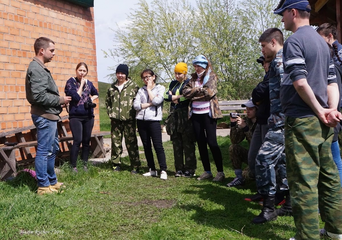 Роман Горелов (спец. по ядам гадюк) толкает речь перед студентами Оренбургского госуниверситета.