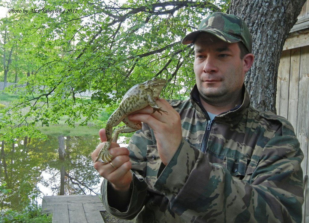 В обнимку со съедобной лягушкой (Pelophylax esculentus) в нацпарке "Чаваш вармане" (Респ. Чувашия)