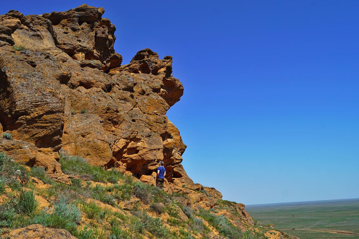 Богдинско-Баскунчатский заповедник, высматриваю сарматского полоза (Elaphe sauromates) среди камней
