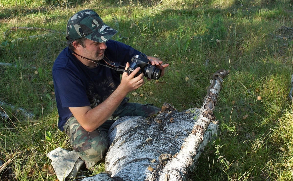 Фоткаю гадюку (Vipera berus) в Муромском заказнике