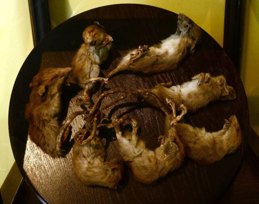 Это самый большой экземпляр «крысиного короля», когда-либо найденного, с 32 крысами. Он был обнаружен в 1828 году