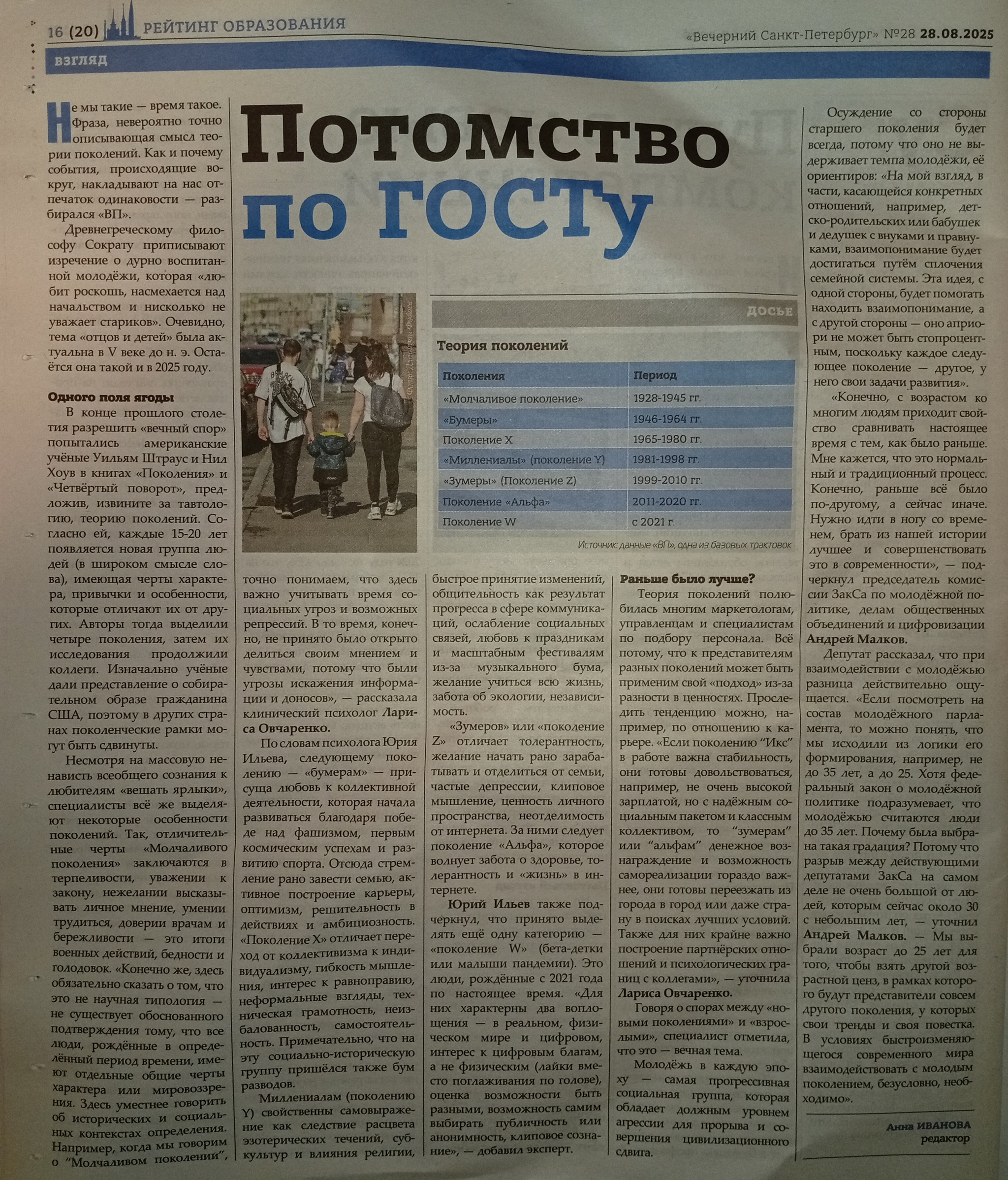 3 Moravian Кто такие Зуммеры?1 3 месяца назад Газета "Вечерний Санкт-Петербург", см. таблицу. Теперь понятно как называть поколения. Спасибо. Россия Санкт-Петербург Газеты Вырезки из газет и журналов Родители и дети Информация Полезное Поколение Современное поколение Новое поколение Старшее поколение Разница поколений Проблемы поколения Потерянное поколение Статья 2 2 Ещё 0