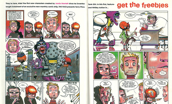 Помимо образов группы ярким примером его художественных работ является «Get The Freebies» — история о подвигах парня по имени Терри Фу, гей-буддистского офицера правоохранительных органов, владеющего кунг-фу, и его помощнице Уайти Экшн — загадочной юной анархистке. Герои занимаются борьбой со злом в лице банды The Freebies.