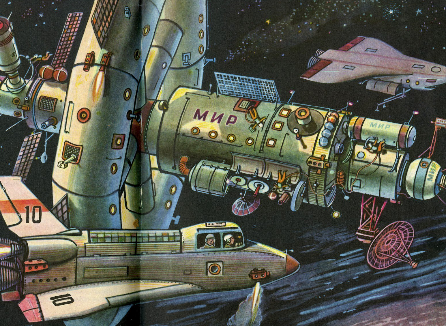 Пока в конструкторских бюро космической отрасли проектировали огромные многоразовые космолеты, прогресс в других областях тоже не стоял на месте. Именно на 70-е годы прошлого века приходится взрывное развитие электроники. Если на начало этого десятилетия большинство выпускаемых образцов собиралось на транзисторах, а многие и все еще на лампах, то к его завершению уже массово штамповались большие и сверхбольшие интегральные микросхемы и микропроцессоры, первый из которых появился еще в 1971 г.. Их производительность росла; размеры и энергопотребление падали; стоимость, в условиях массового производства, стремительно снижалась. Аналоговая техника начинала вытесняться цифровой; первые 8-битные игровые телеприставки появились в 1976 г.; первые недорогие массовые персональные компьютеры — в 1977 г..