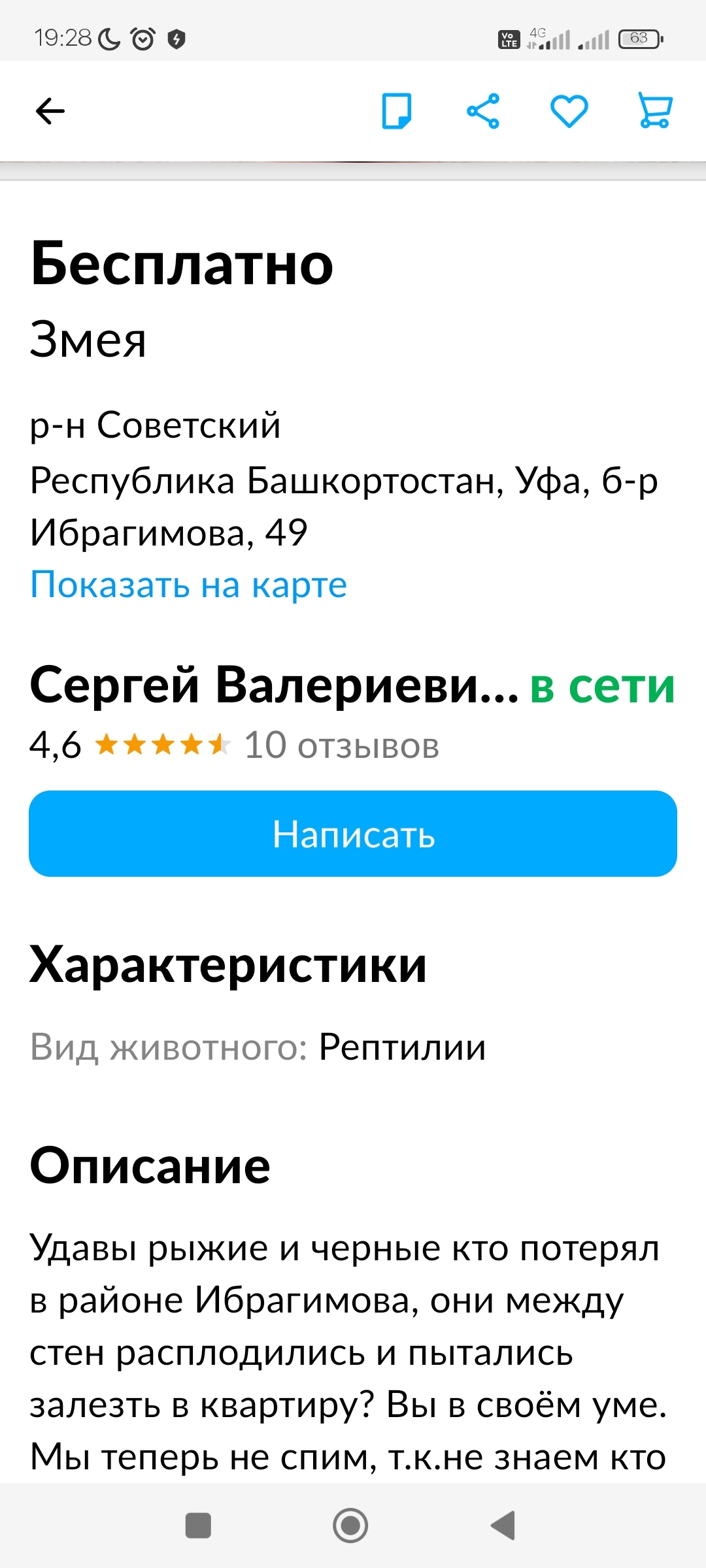 13 KotBezSapogov Кто ужика потерял? 2 года назад Нашёл на авито, хозяин забери уже, люди страдают Уфа Уж Змея Авито Длиннопост Ещё 0