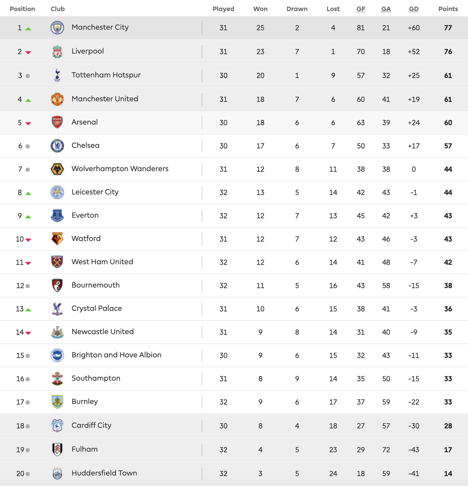 Однако, недавно допустили несколько осечек, сведя 4 матча вничью и "Манчестер Сити" смог вырваться вперед и сейчас опережает конкурента на 1 очко.