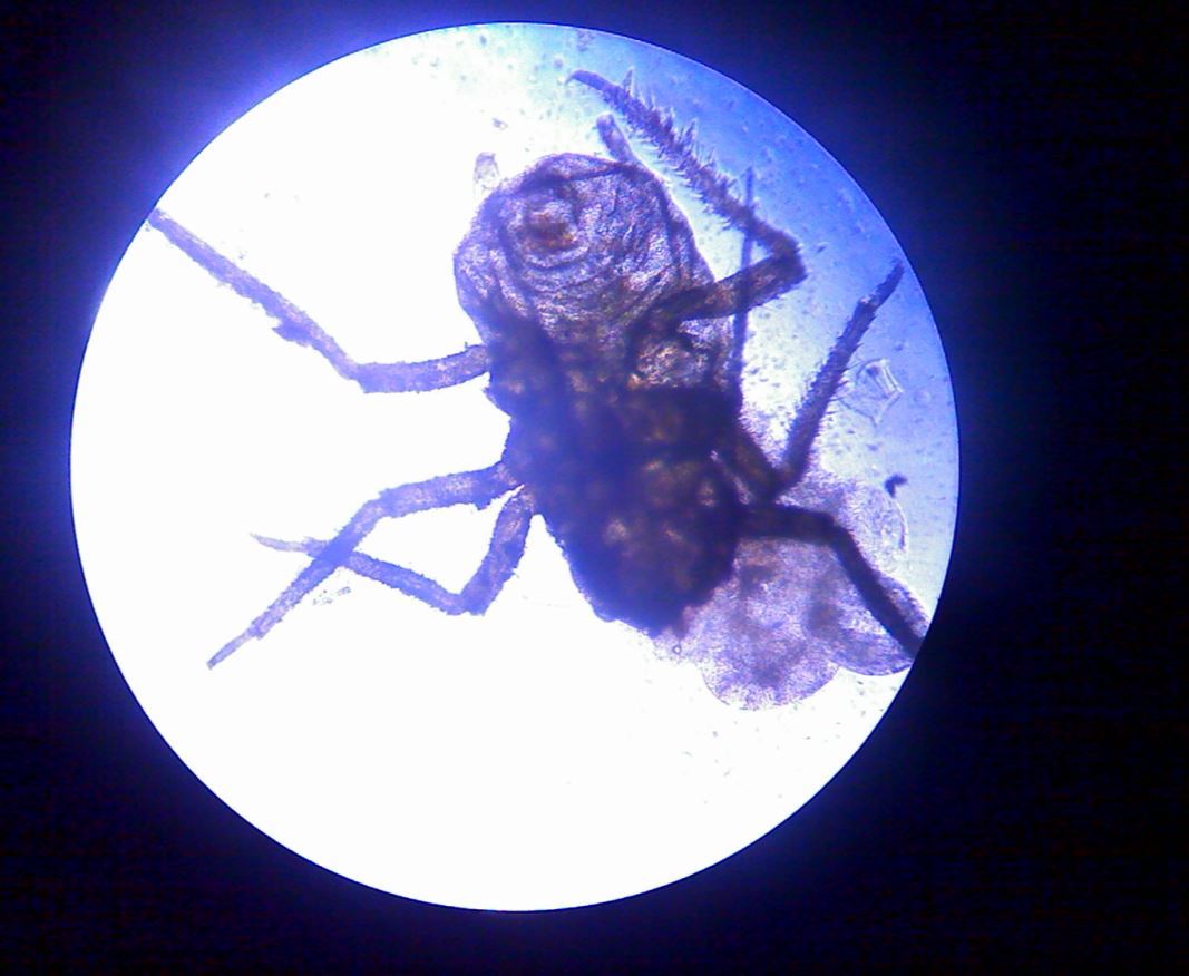 Рассматривал каплю воды из реки и увидел то, что на фото. Увеличение 100х. Оценочный "рост" животного 100 мкм. Дата съемки 05.09.2020, вода из реки Цна Тамбовской области. Может это вообще не водное животное? А просто я плохо протер покровное стекло и это гость из наземного мира?