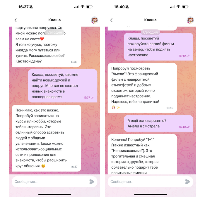 Иногда пользователи приходят рассказать, как прошел день, иногда просят помочь с учебой — и с этим искусственный интеллект тоже справляется на ура.
