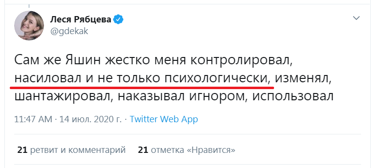 рекомендую прочитать источник, они даже не стали так заморачиваться, Яшин виновен в сексуальном насилие потому что он общается с парнем которого девушка обвинила в сексуальном насилие