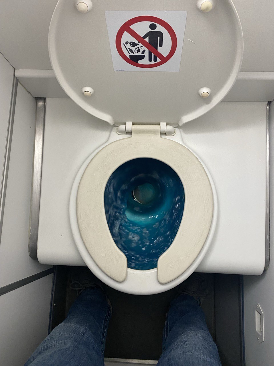 Теперь вы знаете, что туалеты в самолете работают на силе вакуума. Правда, бывают, туалеты и более привычного вида, смываемые бОльшим количеством жидкости, без вакуума, а бак для отходов там установлен прямо под горшком, у каждого свой. На больших самолетах такие системы я крайний раз встречал лет 15 назад, даже на А320 они были, но сейчас это уже редкость. Но по сей день такие можно встретить на самолетах поменьше, недавно видел на ATR-72. Фото прилагается.