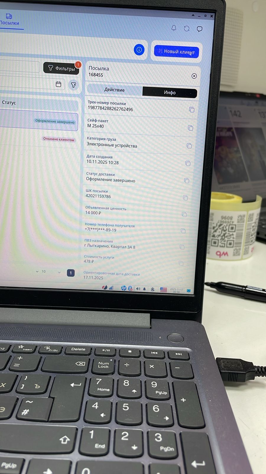 10.11.2025г. На следующий день после получения перевода от покупателя иду я значит в пункт выдачи к оффициалам адрес: г. Мелеуз, ул. Ленина 16 пункт WB чтобы отправить свой телефончик покупателю. Захожу в пункт и прошу принять посылку для отправки на другой пункт WB по адресу: г. Лыткарино, квартал 3А, 8. на что получаю ответ что они ни разу до этого не отправляли посылки wb track и это первый раз. Упаковала посылку в сейф пакет и положила в коробку из под геля 5 литрового, стикеры и этикетки не были удалены от старых доставок и еще добавила мой стикер с wb track. Это и была роковая ошибка когда сотрудник WB не удалила с коробки старые стикеры, об этом я узнал уже потом.