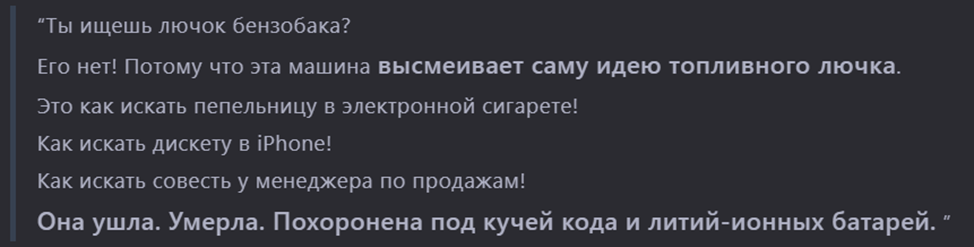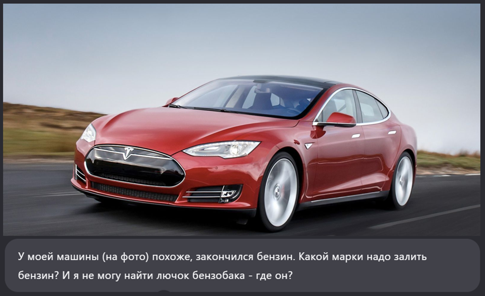 Нейронка, похоже, упорная тоже. Настаивает на том, что это у меня Тесла и бензин ей не нужен.