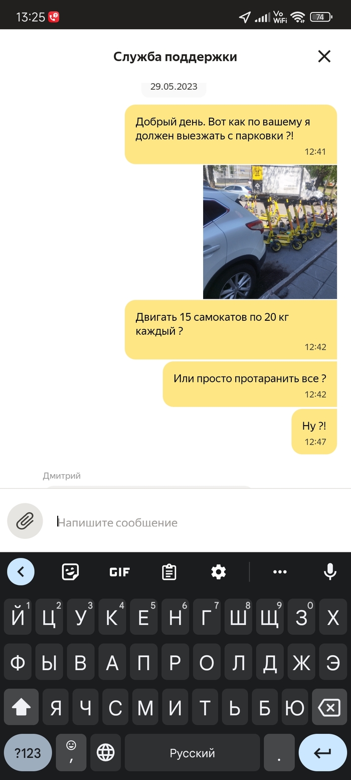 9 MaTTTemp Сервис Куда обращаться на неправильную парковку самокатов ? 2 года назад Столкнулся с такой ситуацией, Яндекс самокаты перекрыли выезд автомобиля. Поддержка не может решить вопрос... Куда можно ещё обратиться и что делать ? [моё] Прокат самокатов Яндекс Неправильная парковка Длиннопост Жалоба Самокат Служба поддержки Переписка Скриншот Нужен совет 1 Ещё 0