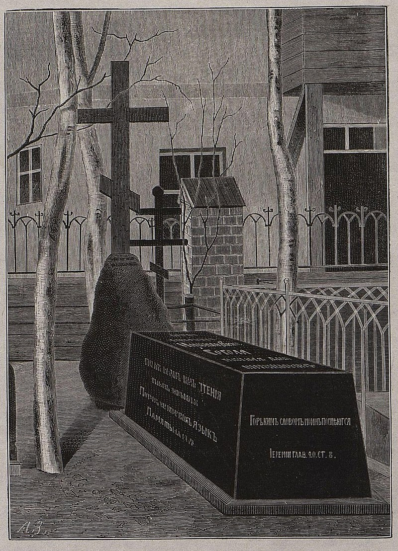 Могила Н. В. Гоголя в Свято-Даниловском монастыре, рисунок сделан В. А. Евдокимовым-Розанцовым. 1886 год