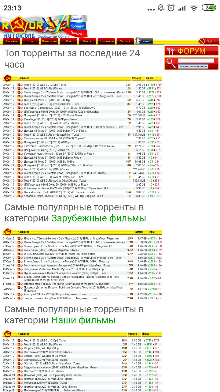 На рутор не наблюдал раздел топ100 с киношками, а на мегашаре каждый раз как зайдешь, так сразу топчик фильмы были и искать долго не нужно