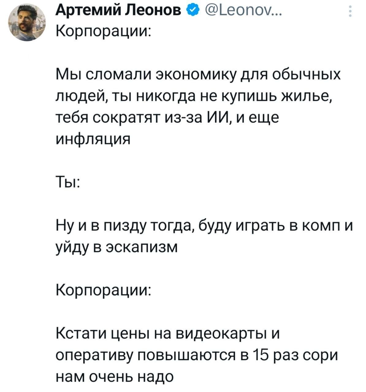 3257 Almutabi Куды крестьянину податься?1 4 дня назад Политика Высокие цены Рост цен Оперативная память Фейк Корпорации Мат Грустный юмор Скриншот X (Twitter) 163 88 39 21 17 5 3 2 1 1 1 1 1 1 1 Ещё 10
