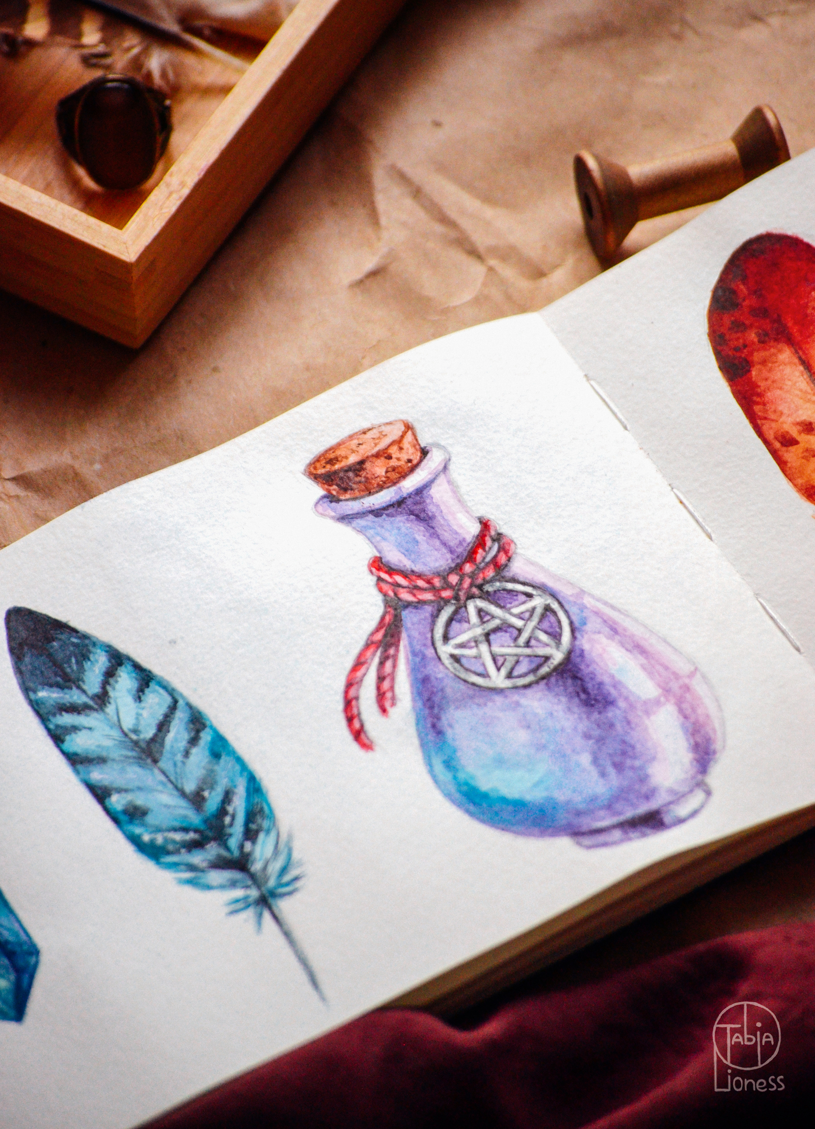 1) Сначала рисуется все вручную в молескине со специальной зернистой бумагой (иногда натягивается планшет или вообще берется просто лист акварельной бумаги, кто как делает)