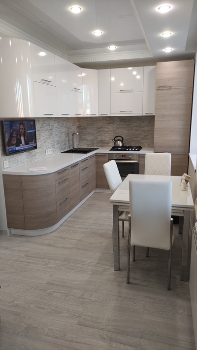 Ну и я свою кухню покажу. И ремонт. Делал почти все сам, только штукатурку и натяжной потолок заказывал. Кухню и шкафы заказывал распил и кромление. На все ушло 3 месяца, в основном после работы и в выходные.