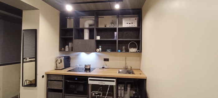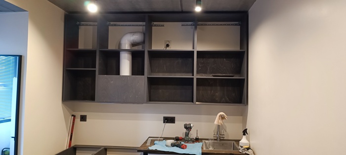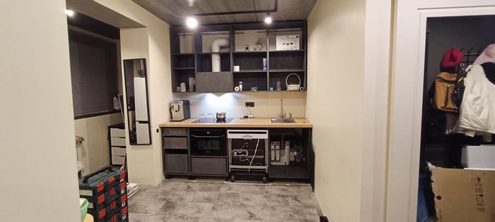 Делюсь незаконченным ещё результатом, нет фасадов, но они будут изготавливаться много позже, на всю мебель в квартире, сделанную подобным образом.