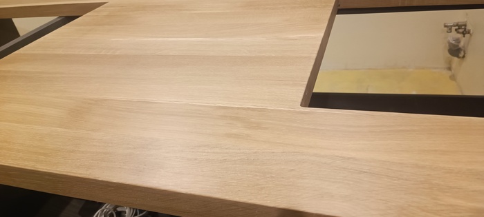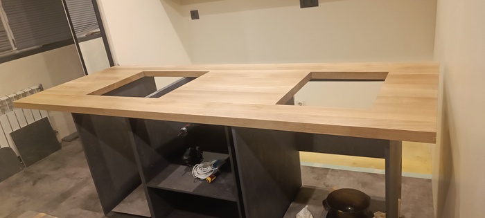Так же отшлифовал 120м зерном и покрыл маслом для столешниц с твёрдым воском Осмо.