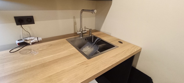 На всё ушло около 20тр на фанеру, около 40тр на столешницу, около 20тр на химию и около 10тр на фурнитуру.