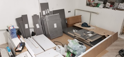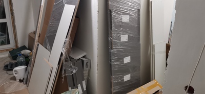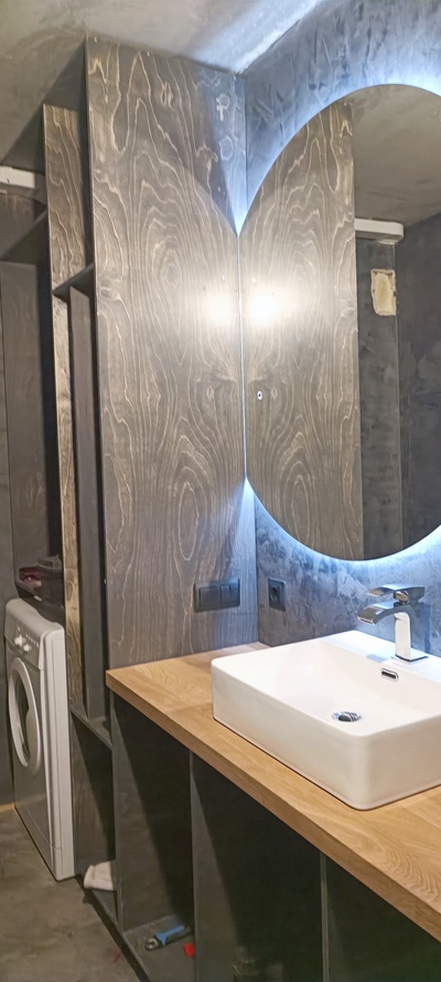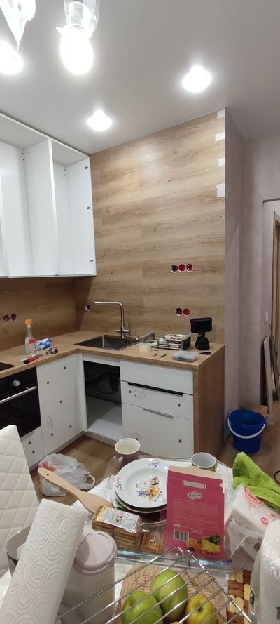 Делюсь незаконченным ещё результатом, нет фасадов, но они будут изготавливаться много позже, на всю мебель в квартире, сделанную подобным образом.