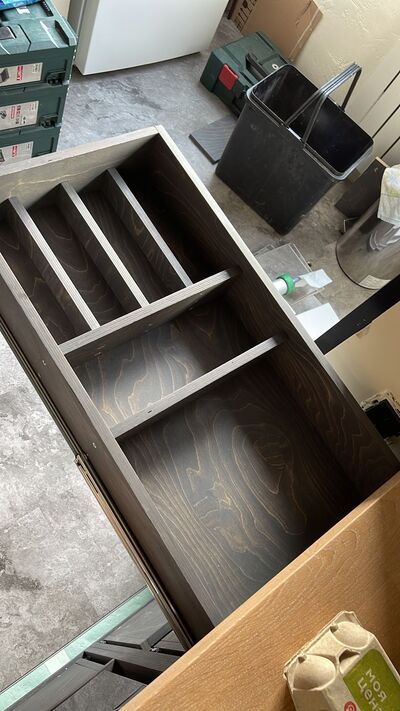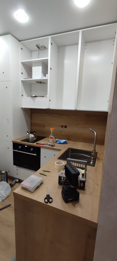 На всё ушло около 20тр на фанеру, около 40тр на столешницу, около 20тр на химию и около 10тр на фурнитуру.