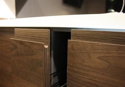 Фурнитуру скрытого монтажа для выдвижных ящиков на глубину более 60см найти по вменяемой цене не смог, поэтому поставил обычные направляющие, но с доводчиком. Да работают они хуже (жёстче, громче) , но зато ящики у меня 70см глубиной, а это было важно на такой узкой кухне.
