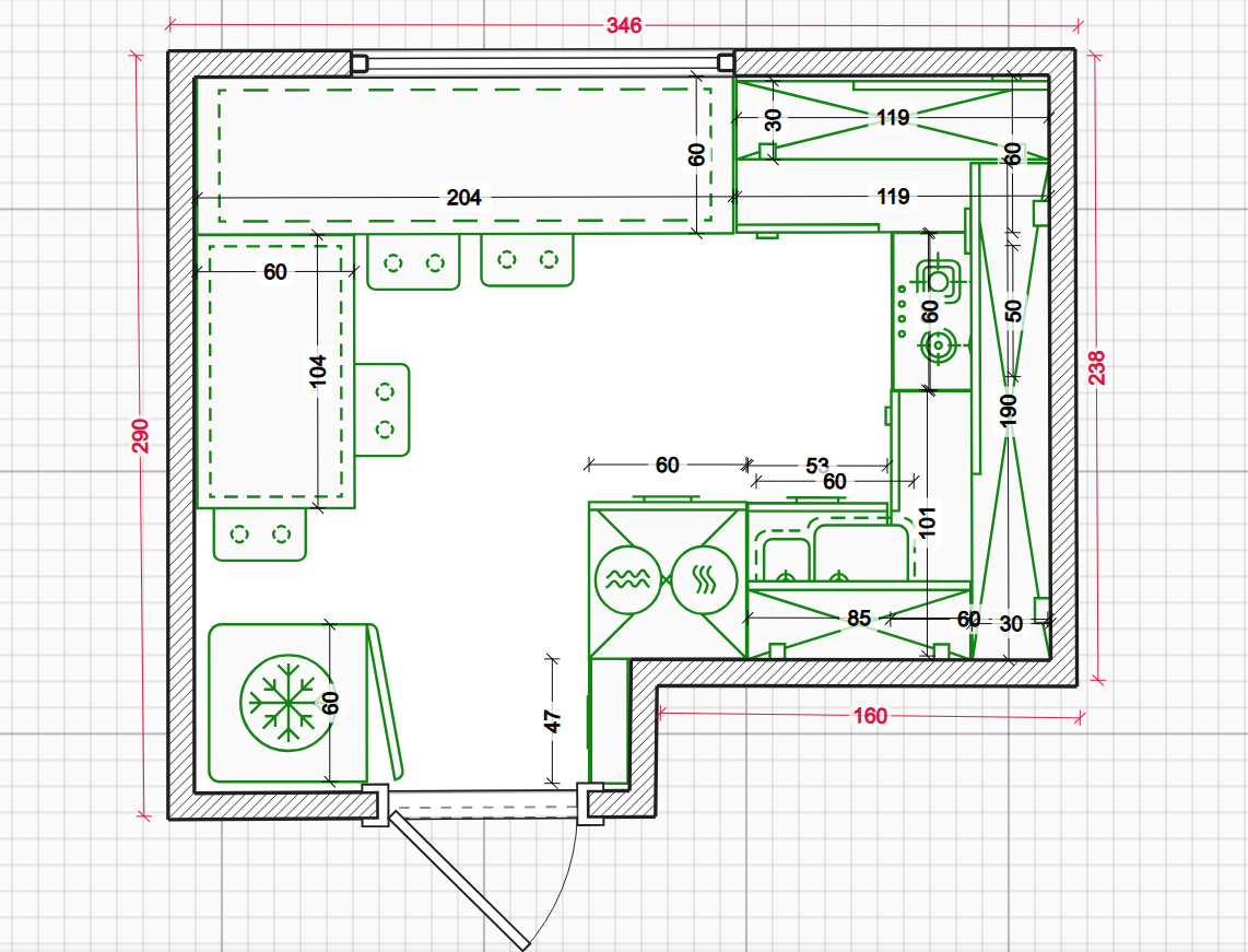 Спроектировал и собрал кухню в квартиру 42 квадрата. После просмотра готовых вариантов стало понятно, что это дорого и не то, что хочется. С женой сели за комп, нарисовали проект в Базис-Мебельщике за пару дней, потом в течение года ещё немного изменяли его.