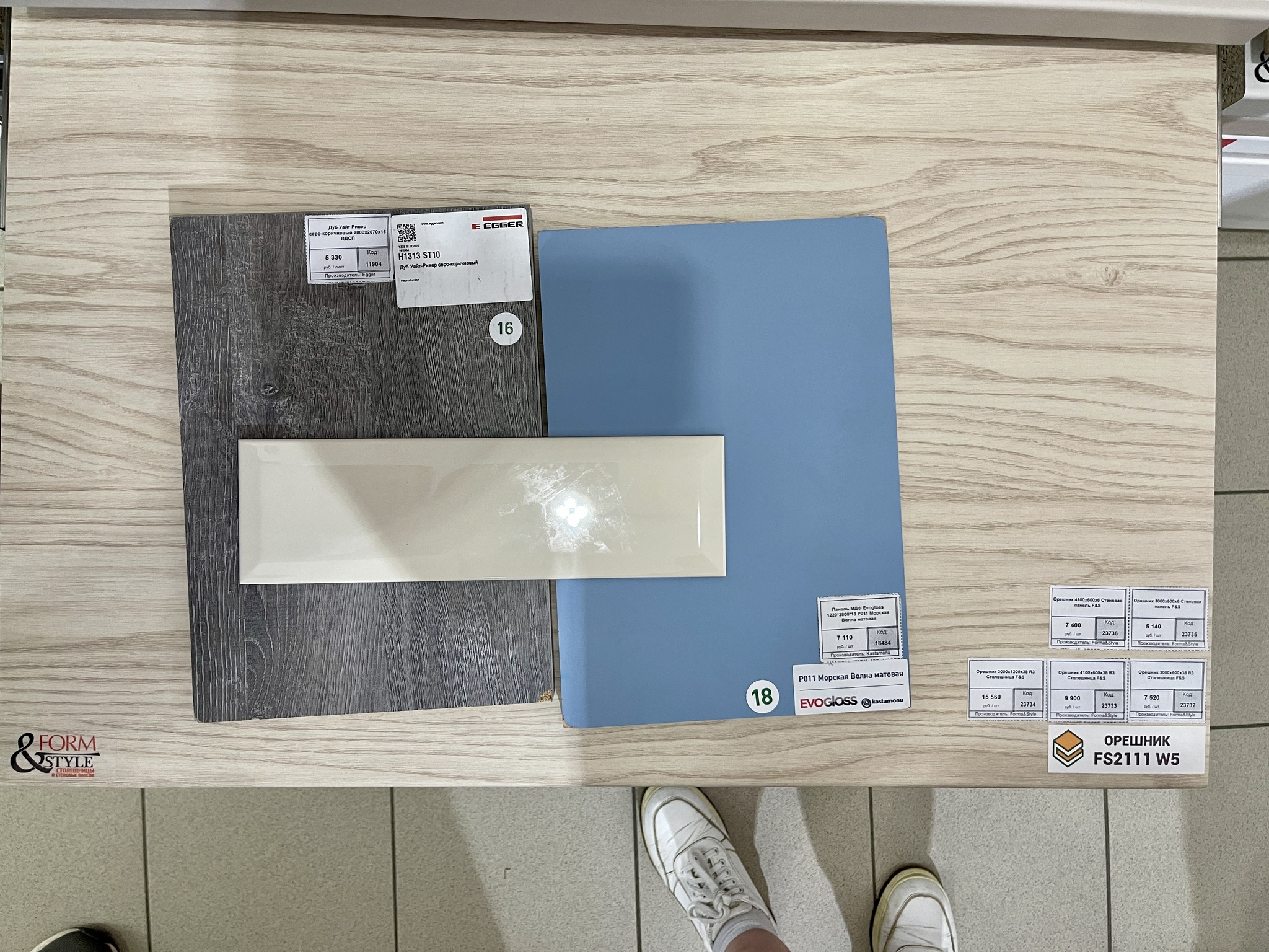 Итоговый результат. Надо менять петли на верхних шкафчиках, не получилось нормально отрегулировать с текущими.