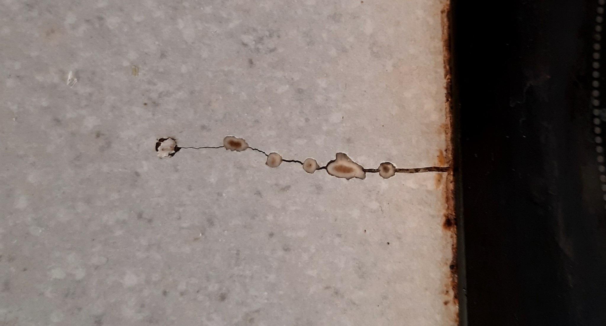 Эта большая длиной со спичку. Видно, как я пытался ее остановить методом засверловки конца, и как она продолжала лезть. Но вот уже года 2-3 не лезет дальше. Что я сделал не так, не понимаю. Вырезал дыру под панель лобзиком, сама плита зеленая влагостойкая, под краями панели герметиком мазал. Плохо намазал наверное, и когда кипяток убегал из кастрюли он попадал внутрь на срез? А влагостойкость вещь относительная, и от кипятка не спасает? Видимо, так. Чудес же не бывает.