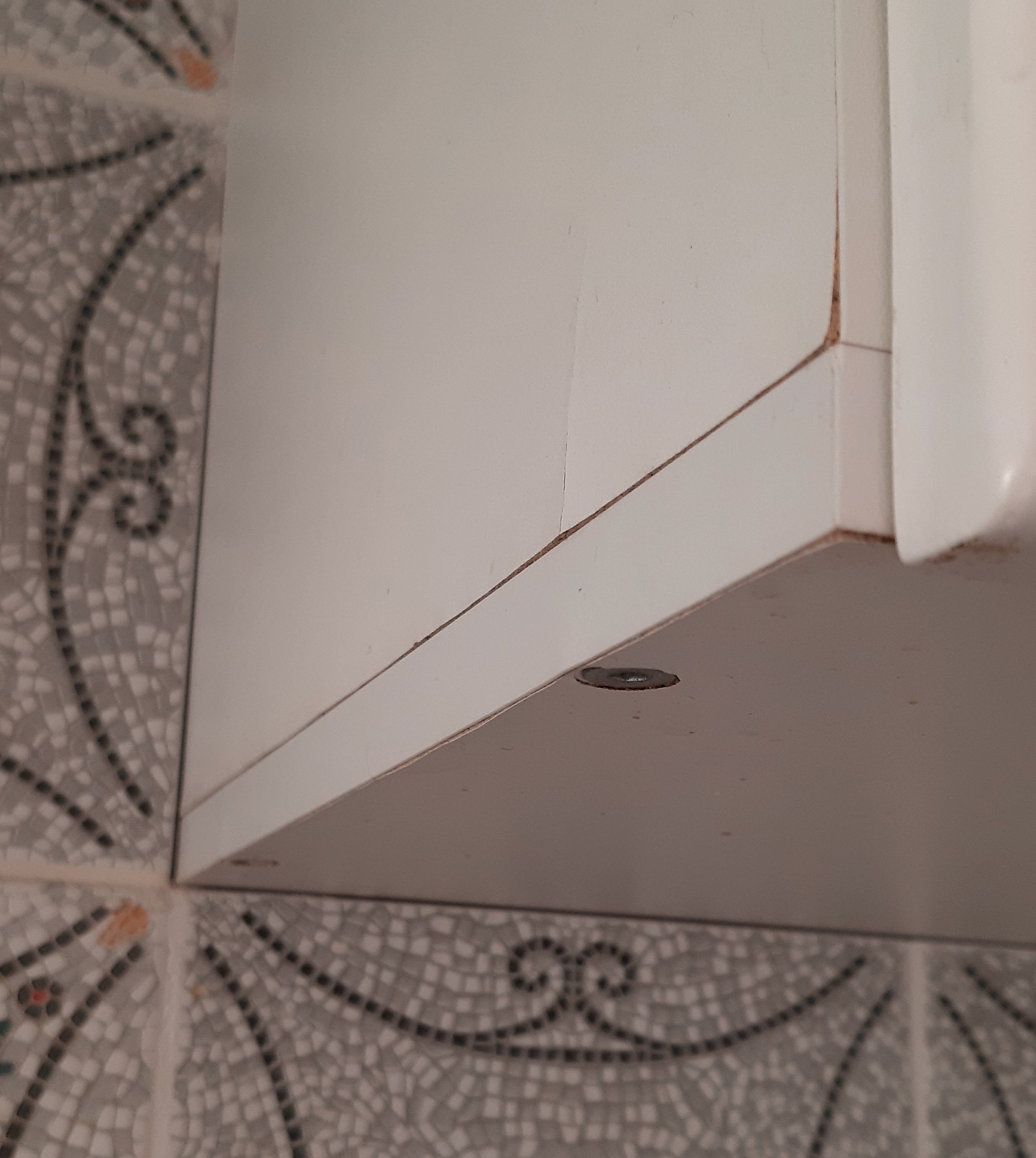 Первый - корпуса ДСП в зоне испарений от кастрюль. За 6 лет не так и критично, но я не понимаю что с этим можно (было) сделать (изначально). Специально ради этих двух стеночек кроить один лист влагостойкой ДСП? А она точно из другой партии, а если по оттенку цвета не совпадет? Наколхозить сверху белых пластиковых уголков?
