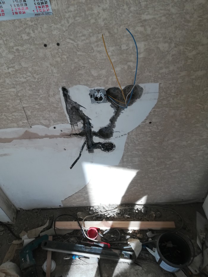 Как я уже писал до этого, полгода назад заехали в квартиру, сделали частично ремонт. И как это бывает закончились деньги. И дабы хоть как то жить, сколотил из *овна и палок временный гарнитур: