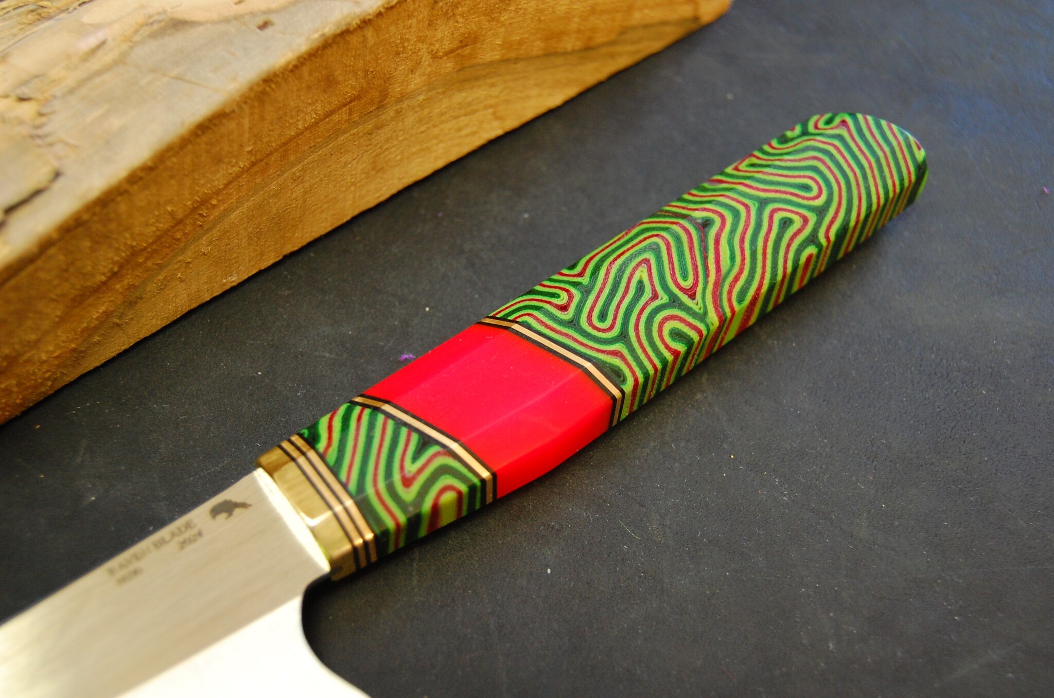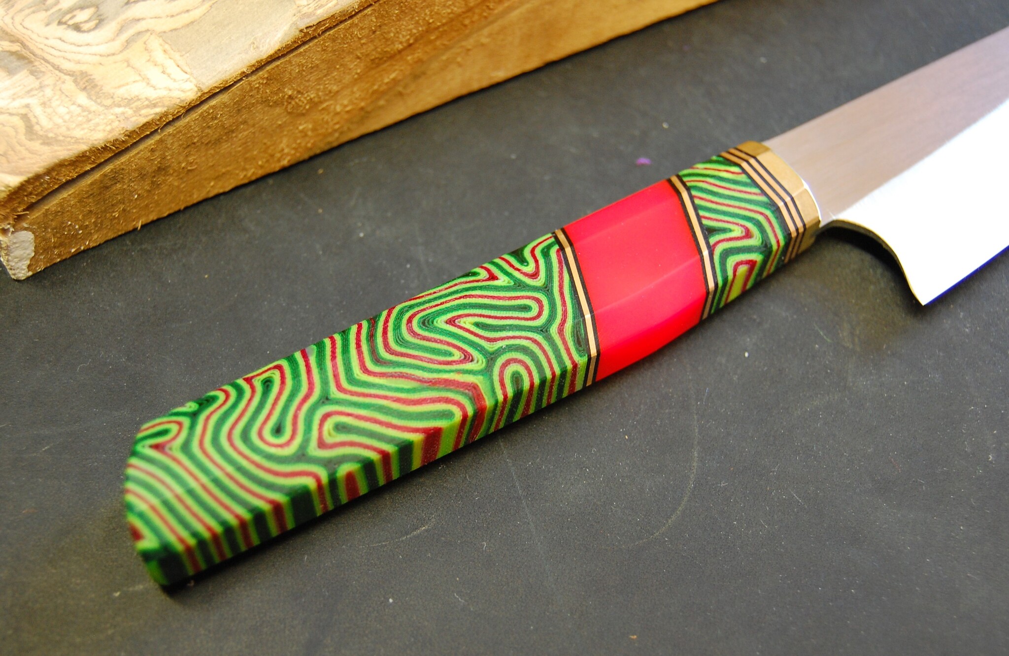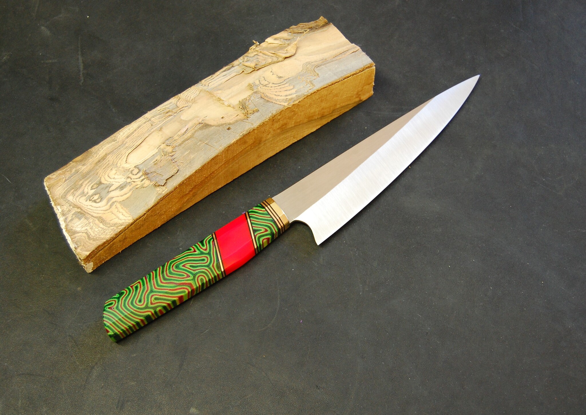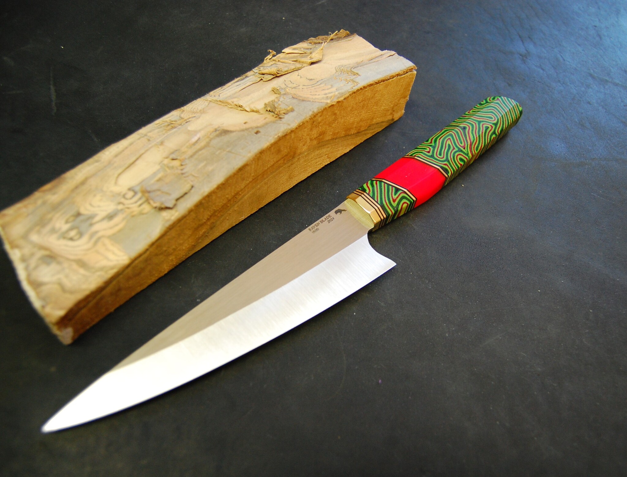 Получился яркий и приятный кухонный универсальный нож. Микарта как всегда меня радует. Все лучше и лучше получается ее изготавливать