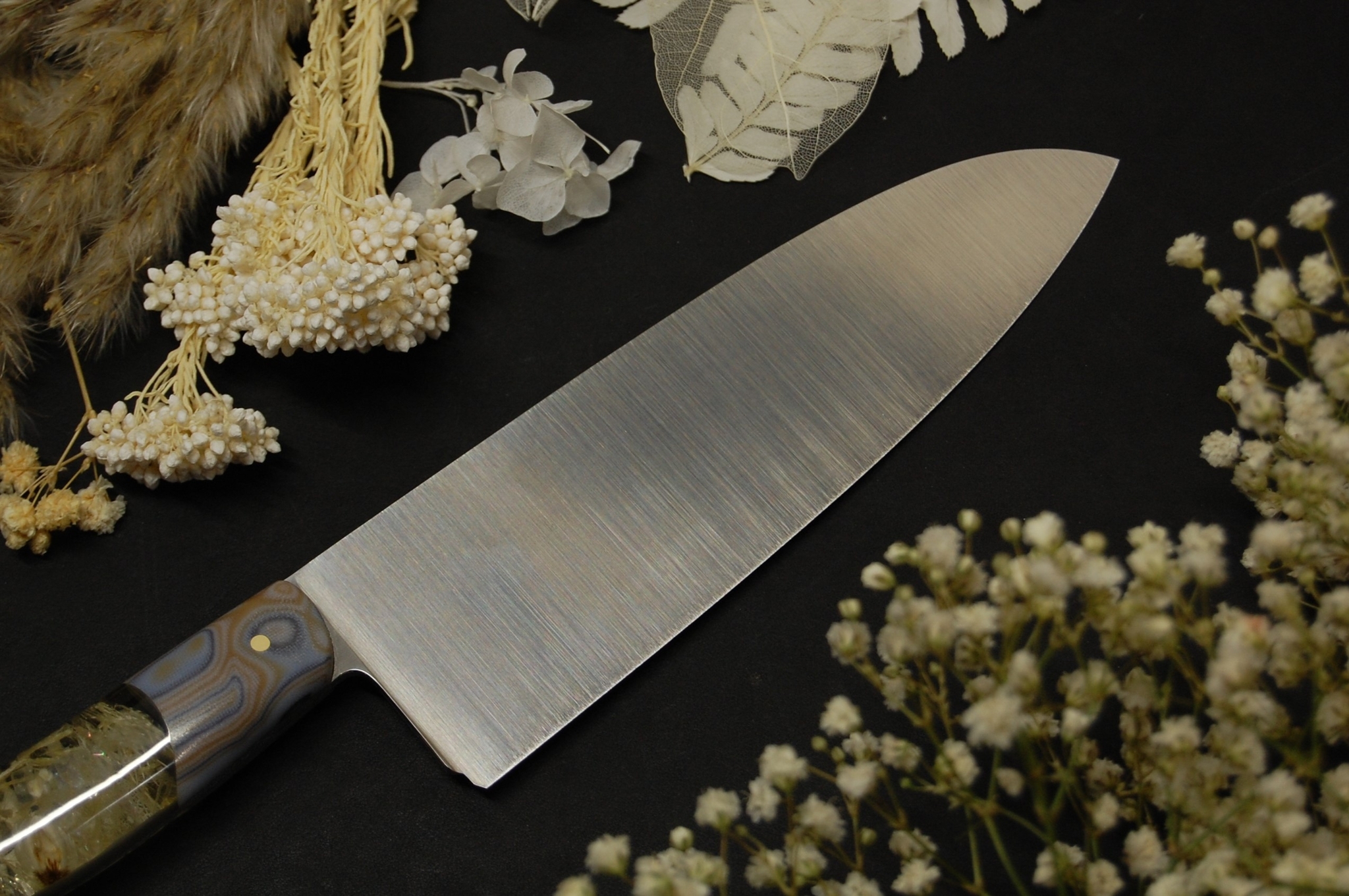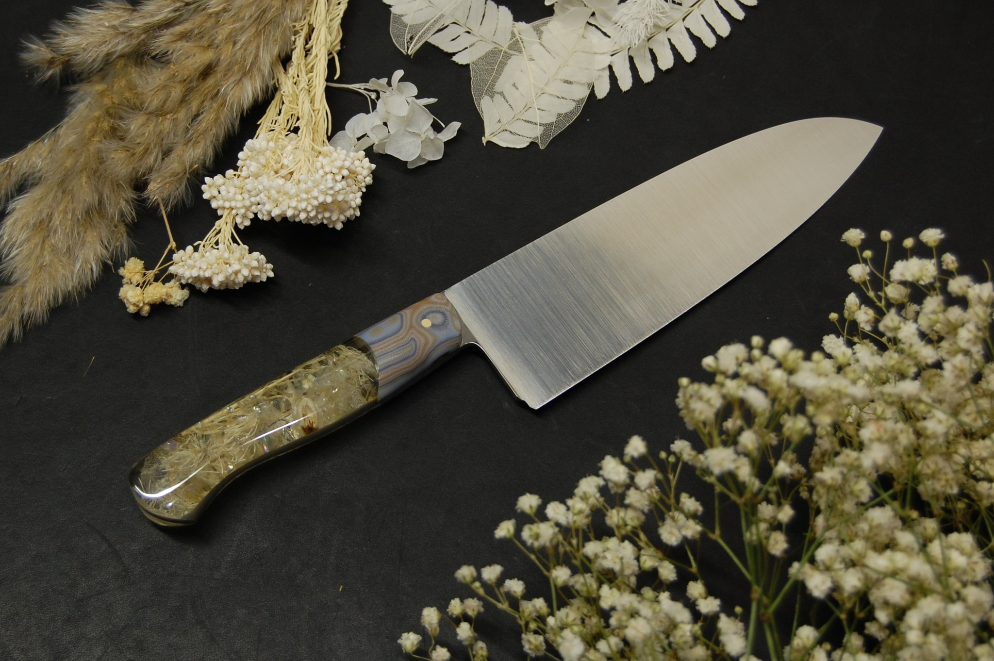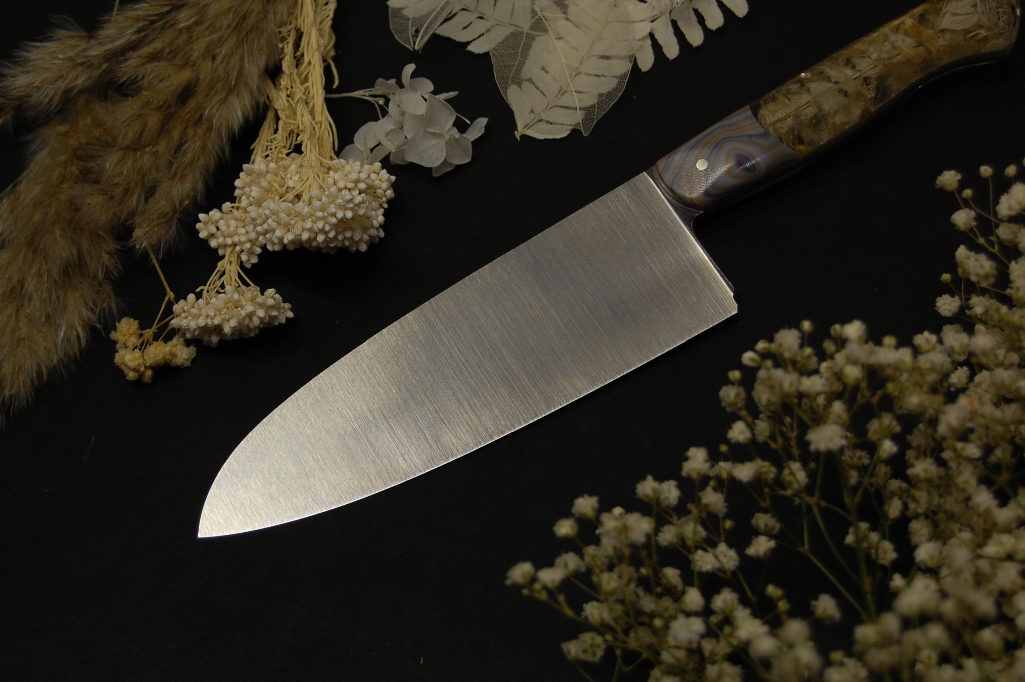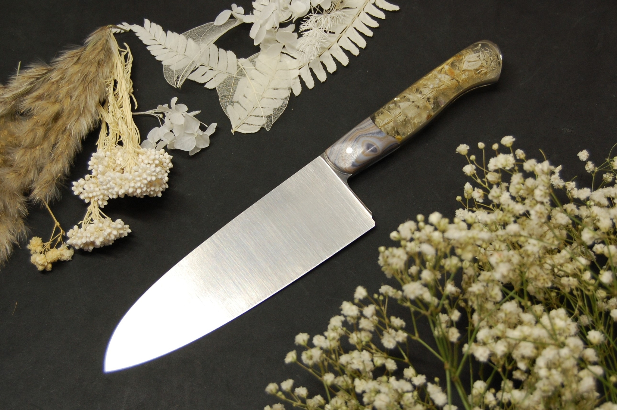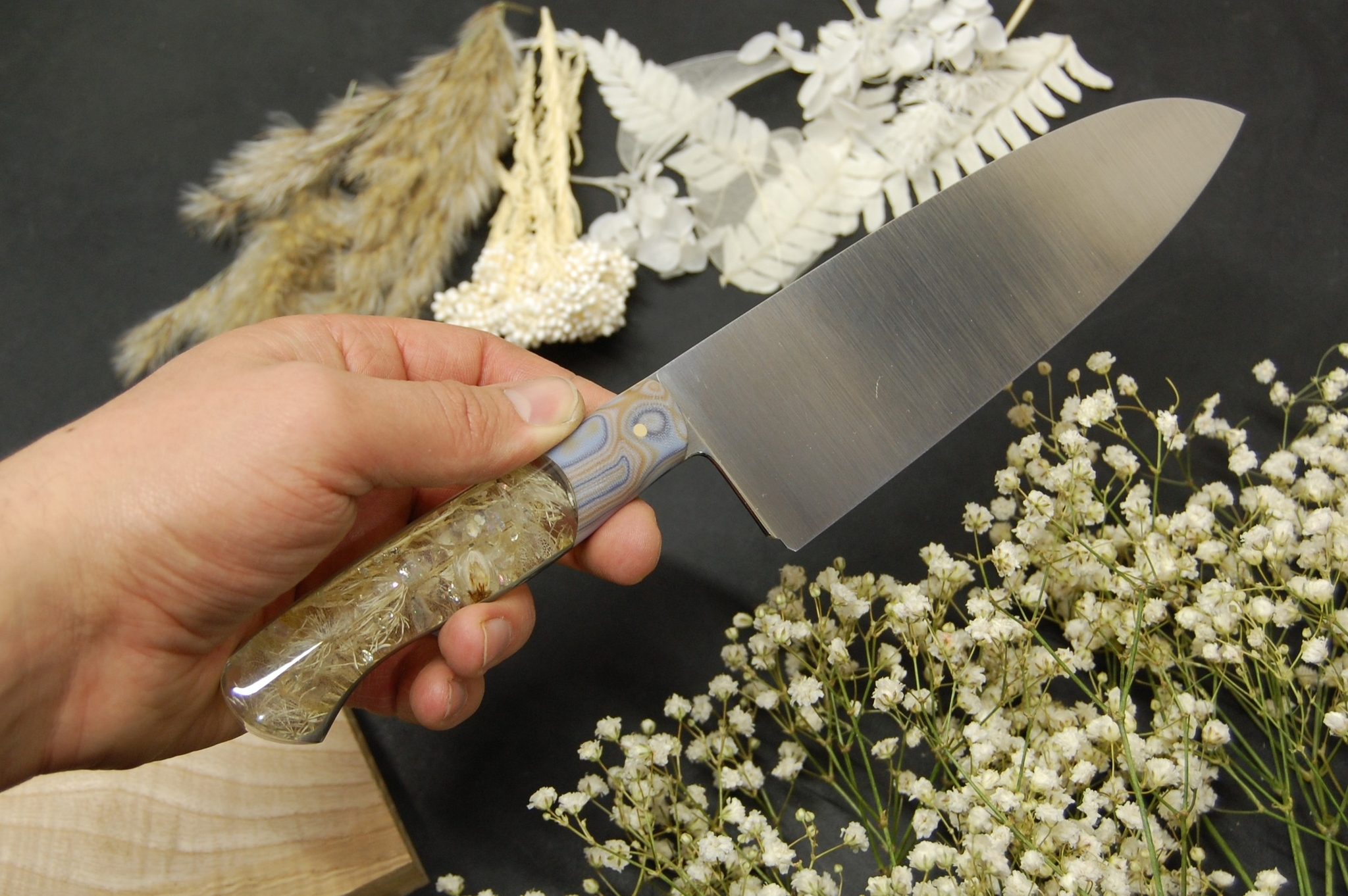 Кухонный сантоку с сухими цветами