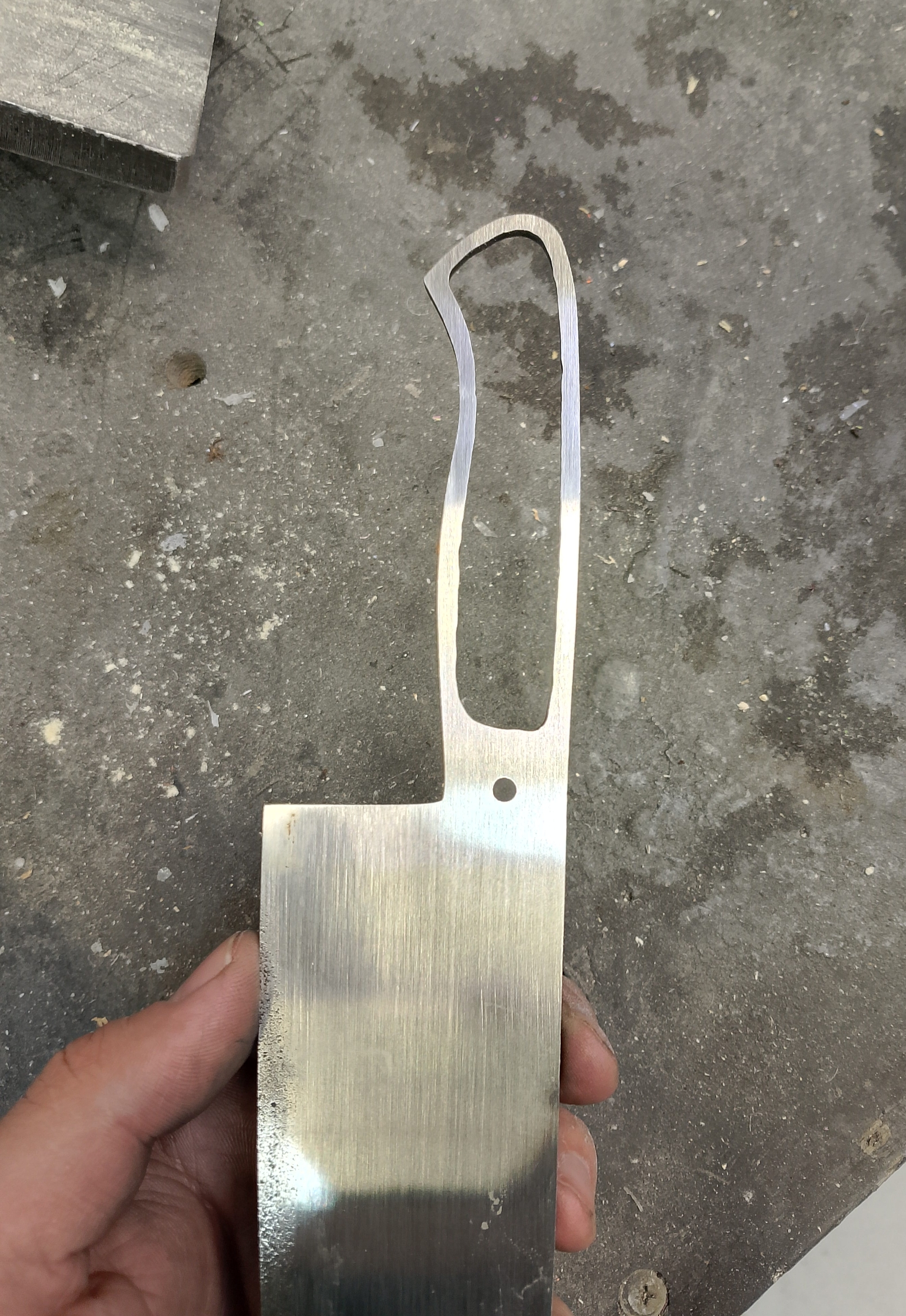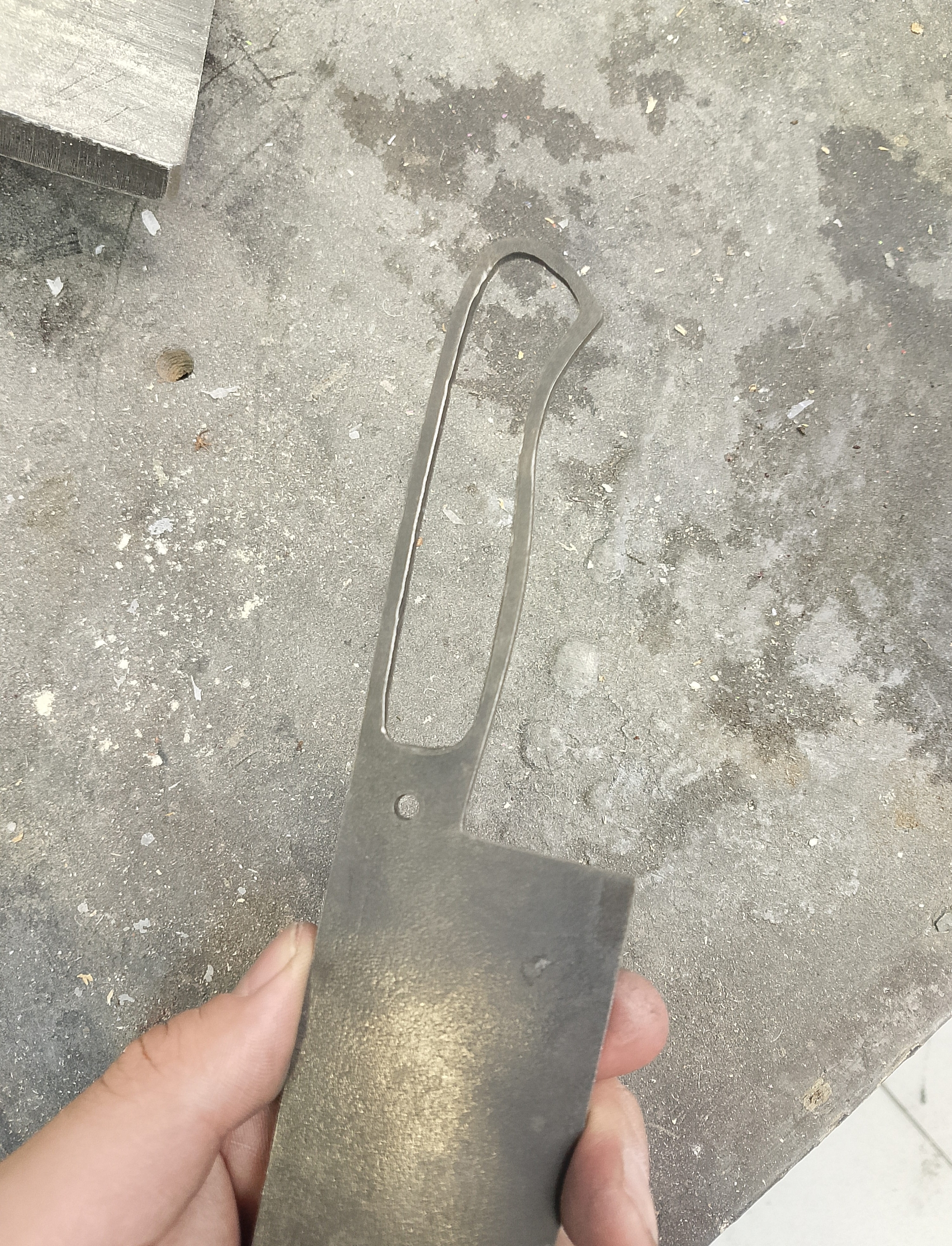 Немного фото с процесса. Так выглядит хвостовик без всего. Со шлифовкой и без. Такая рамка нужна для прочности рукояти.