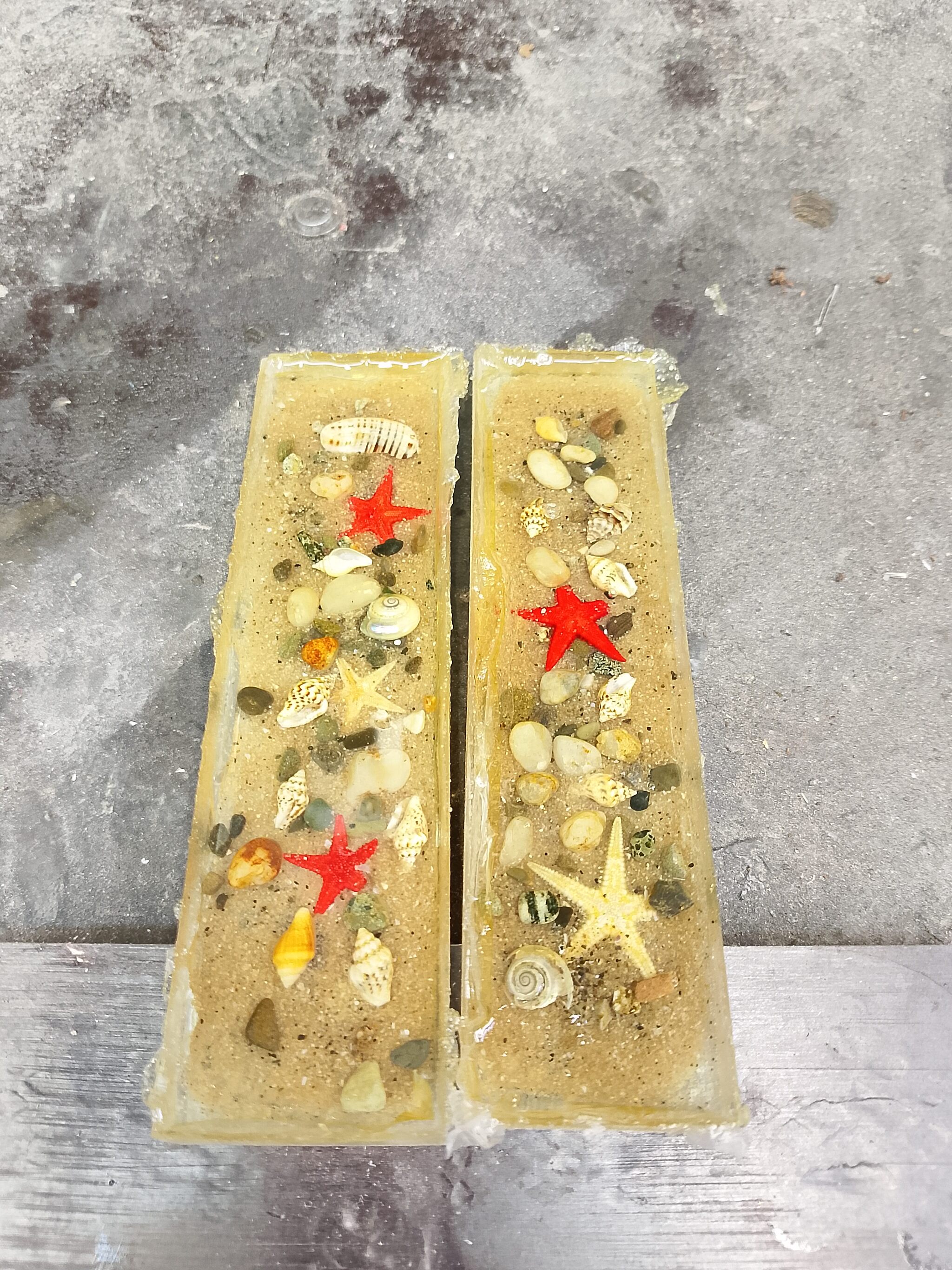 На летнюю морскую тематику. Настоящие песок, ракушки и морские звёзды. Это не бутафория)