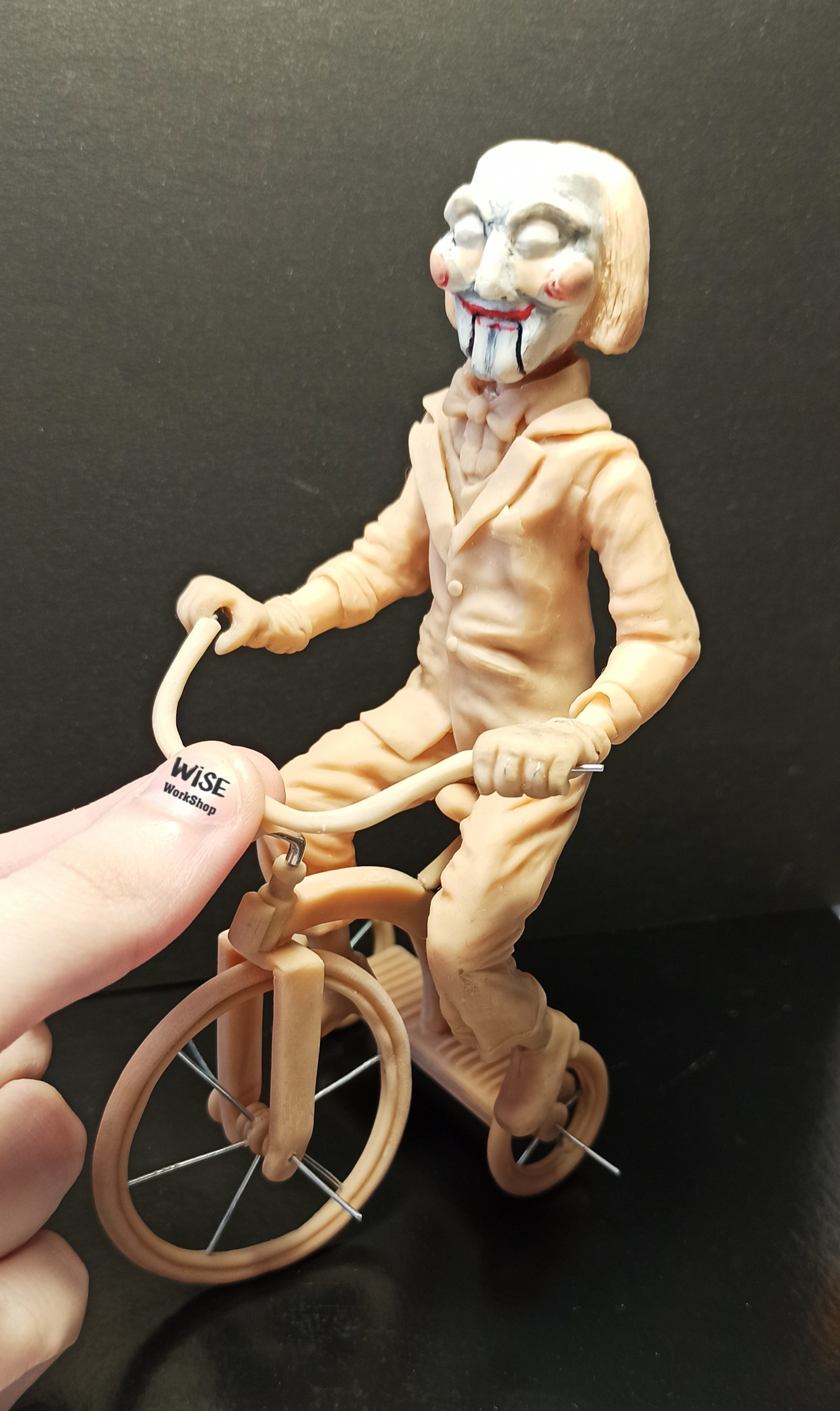 Кукла Билли на велосипеде из полимерной глины из серии фильмов "Пила"