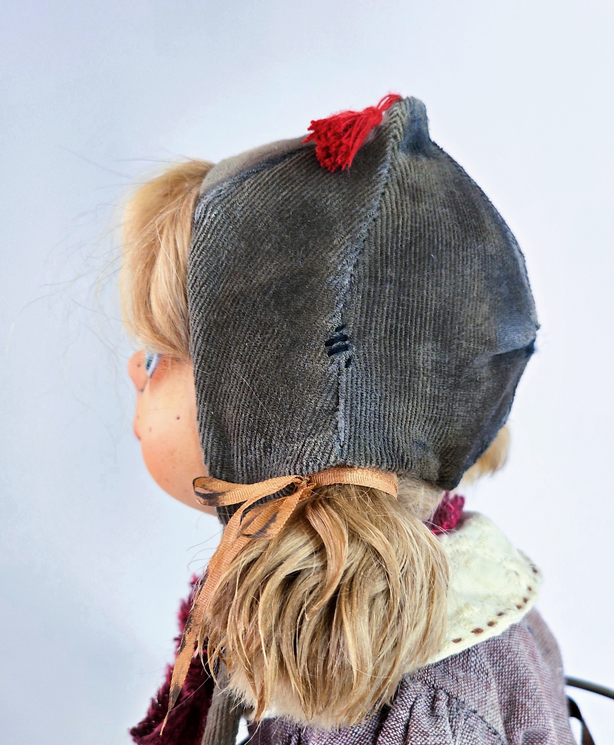 Голова, руки и ноги выполнены из глины Ладолл. Тело набито опилками. Утяжеление - минеральный гранулят. Руки, ноги - шплинтовое крепление. Ткани - натуральная кожа, вареный хлопок, бязь, фланель, микро вельвет . Волосы - нат. коза.