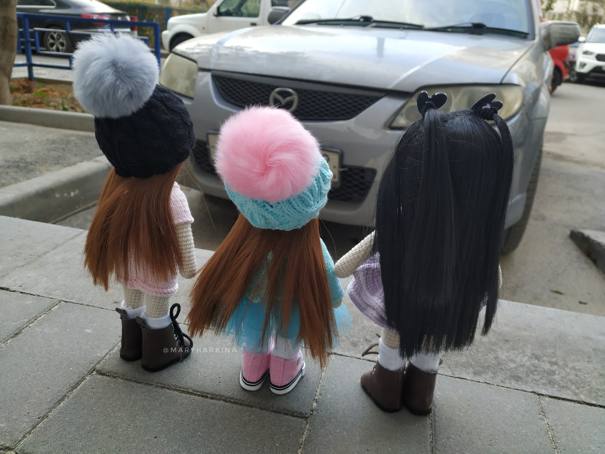 Делюсь с вами фото кукол, которых сделала сама! Ростом 24-26 см. Одежда съёмная, волосы специально для куклы, надёжно пришиты. Могут стоять самостоятельно за счёт обуви. тело куклы связано крючком. Одежда связана спицами.
