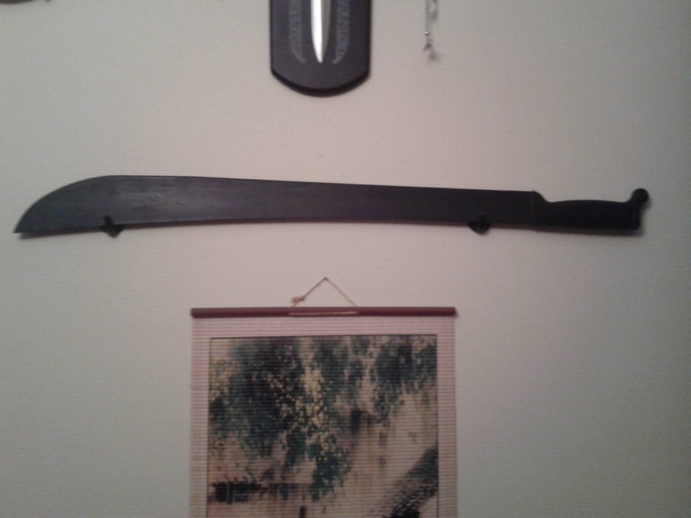 Моим голову снести на раз можно, если силы хватит позвонки перерубить. К нему сертификат, что "хозяйственно бытовой", заточка - руку бреет, рублю дровишки в костер, не точил ни разу. Тот, что выше, мачете который, у нас продается под маркой Трамантино в хозяйственных магазинах как кухонный, но клинок тонкий, гнется.