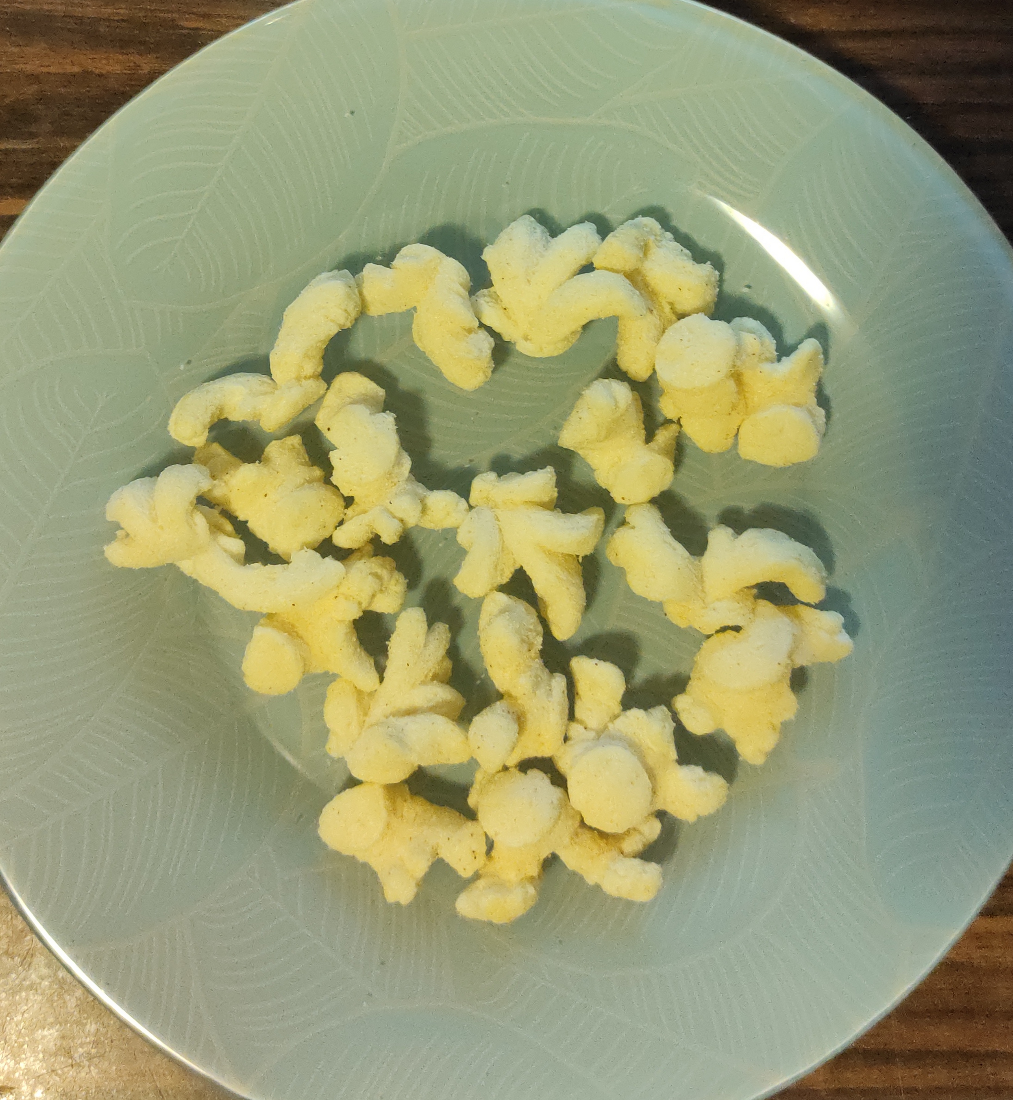 Внешне данные снеки напоминают нарубленных поролоновых осьминогов, основной вкус сладкого поролона, затем, растаяв во рту, проявляется чеснок.